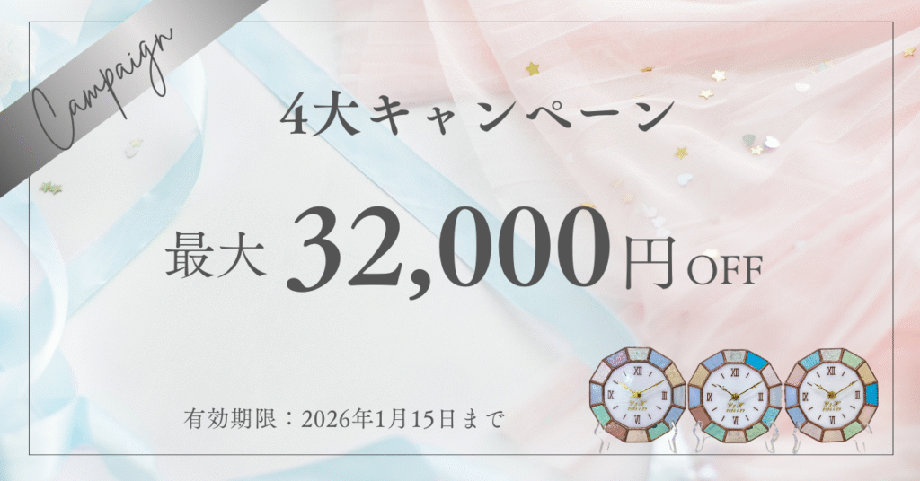 結婚式の両親記念品にステンドグラスのつながる時計を|魅力や意味を徹底解説